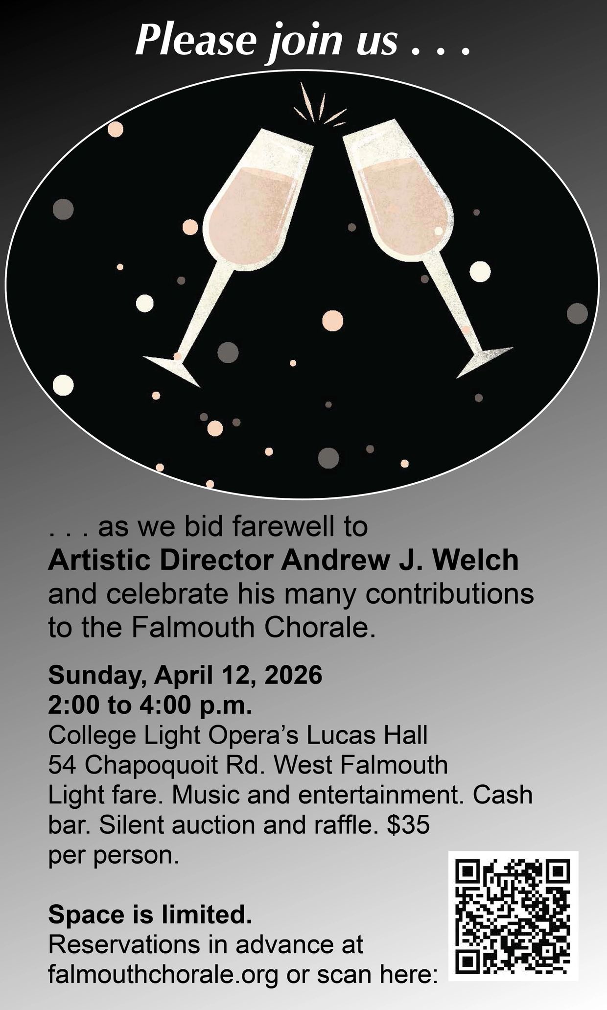 The mission of the Falmouth Chorale is to engage with audiences by sharing our passion for musical excellence and the joy of singing.
